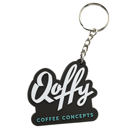 Een leuke gadget van Qoffy. Deze zacht rubberen sleutelhanger met 3D reliëf van het Qoffy logo. Voor de echte Qoffy-fan.
